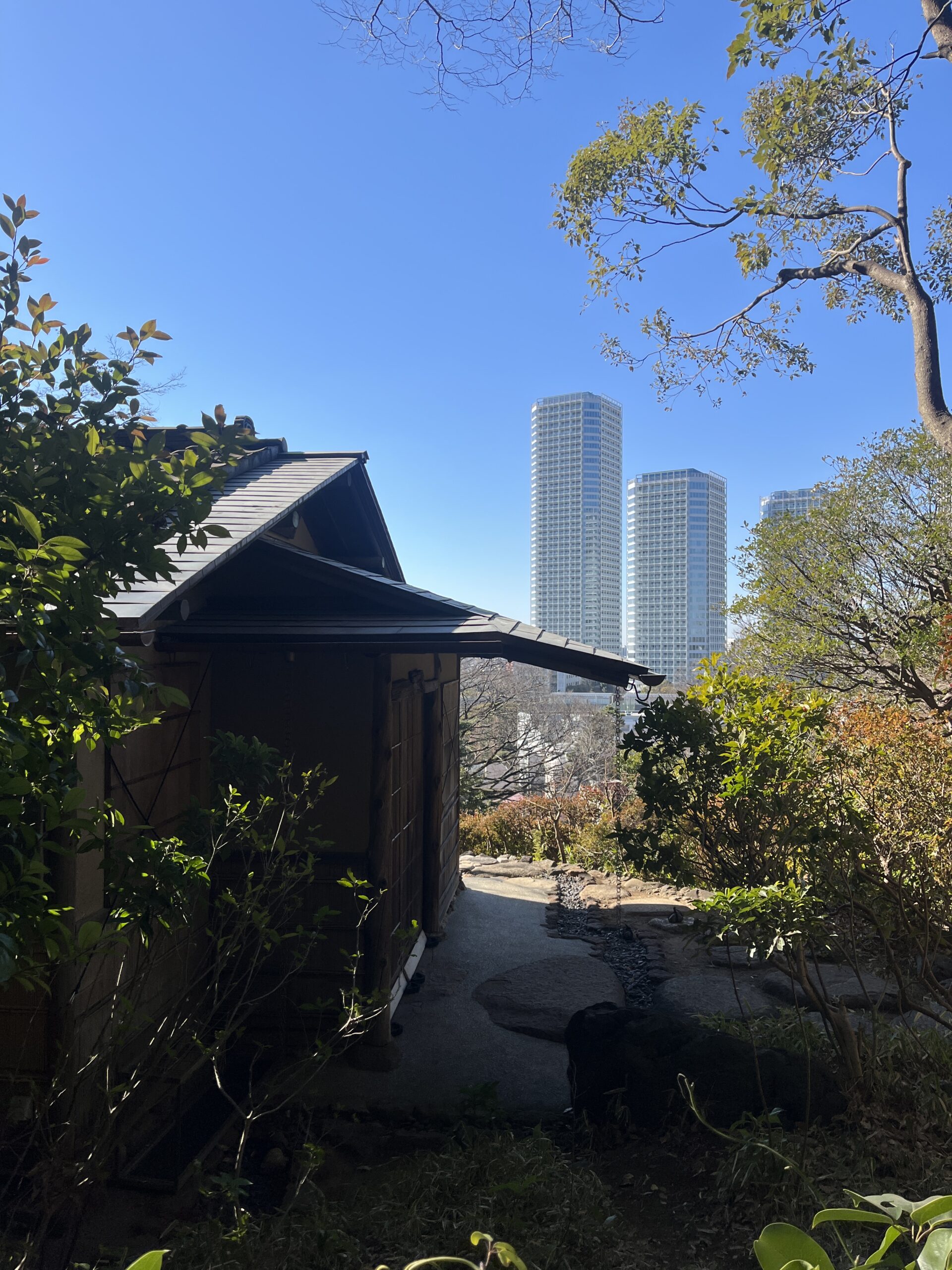 木々のあいだから二子玉の大きなビルが見えて、自然とビルのギャップが面白かったです。
